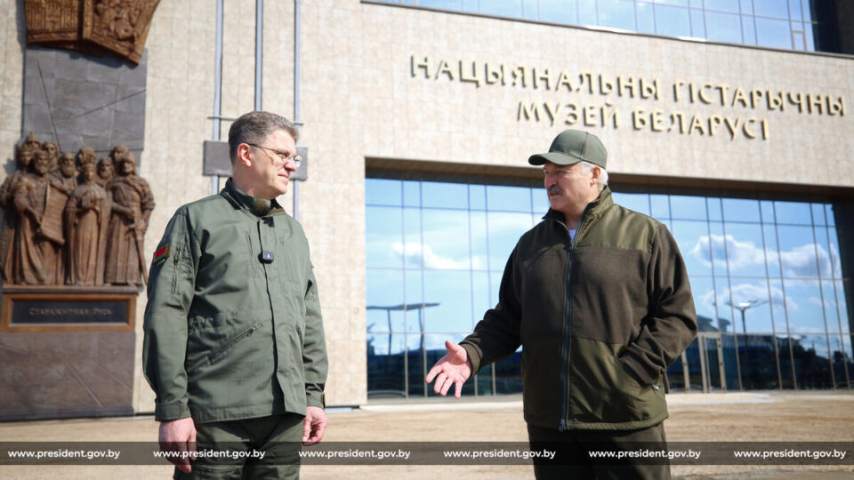 Во время субботника председатель Мингорисполкома Владимир Кухарев доложил Президенту о ходе строительства здания музея.