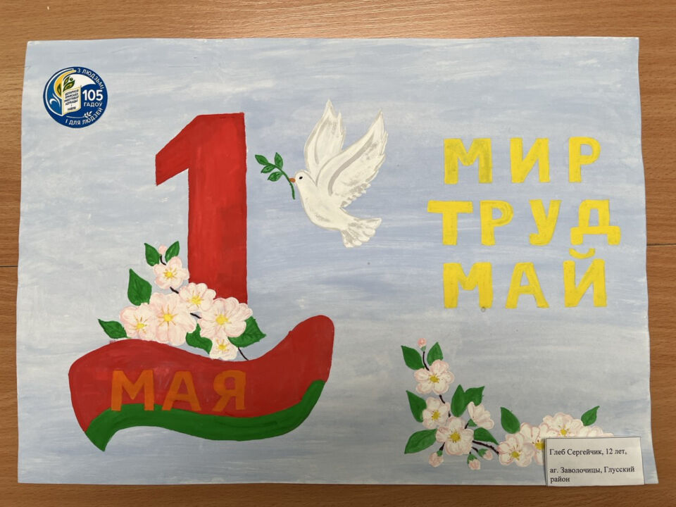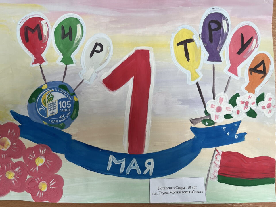 Районный этап республиканского конкурса детских рисунков «Первомай шагает по стране» объявила Глусская районная организация Белорусского профсоюза работников образования и науки. В конкурсе, посвященном 105-летию отраслевого профсоюза, принимали участие дети работников системы образования района. Всего 24 работы.