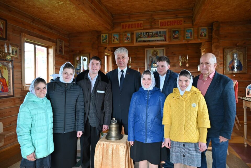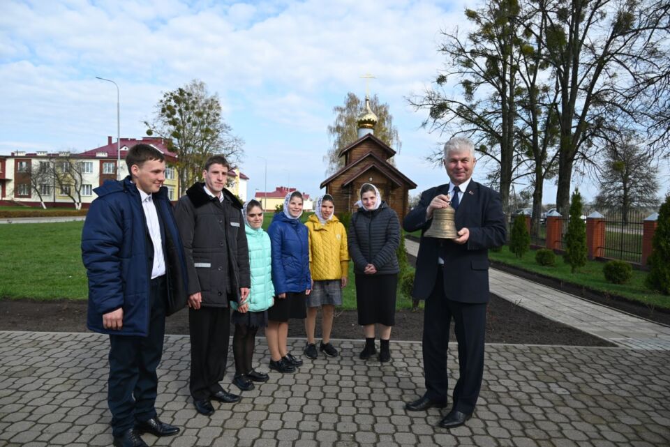 Уполномоченный по делам религий и национальностей Республики Беларусь Александр Румак передал в Глусский детский социальный пансионат «Весново», в храм Святого Патрикия, церковный колокол